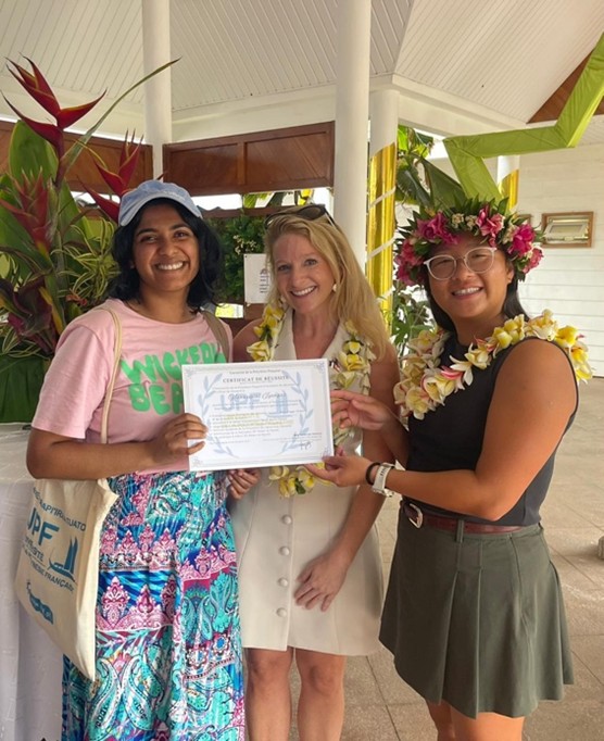 Cultural and language immersion continued outside class time, the group visited two secondary schools in Papeete (one middle school and one lycée) as well as the Assemblée Térritoriale, the Musée des îles and a number of key natural features in Tahiti and Moorea.
